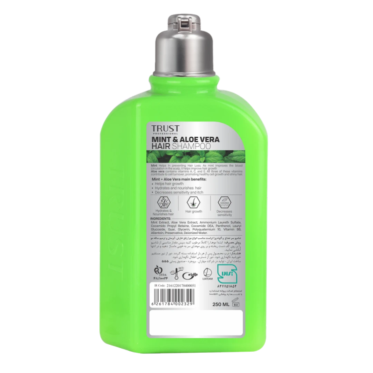 عصاره نعناع،عصاره آلوئه ورا،آمونیوم لورت سولفات،کوکامیدوپروپیل بتائین،کوکامید DEA،پانتول،لوریل گلوکوزید،گوار،گیلیسرین،پلی کواترنیوم-10، ویتامین B6