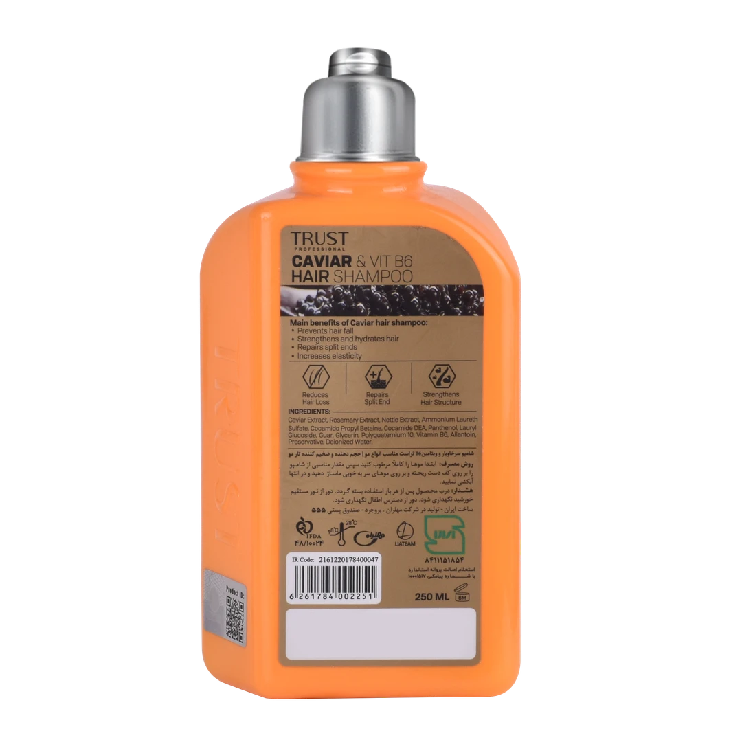 حجم250 میلی لیترفرم محصولشامپوجنسیت مصرف کنندهعمومینوع موانواع موکاربردحجم دهنده مو،ضخیم کننده تارهای مومواد مؤثرهعصاره خاویار،عصاره رزماری،عصاره گزنه،آمونیوم لورت سولفات،کوکامیدوپروپیل بتائین،کوکامید DEA،پانتنول،لوریل گلوکوزید،گوار،گلیسیرین،پلی کواترنیوم-10،ویتامین B6شماره پروانه بهداشت10024 48شماره تأییدیه1905بازه زمانی مصرف محصول بعد از باز شدن6 ماه